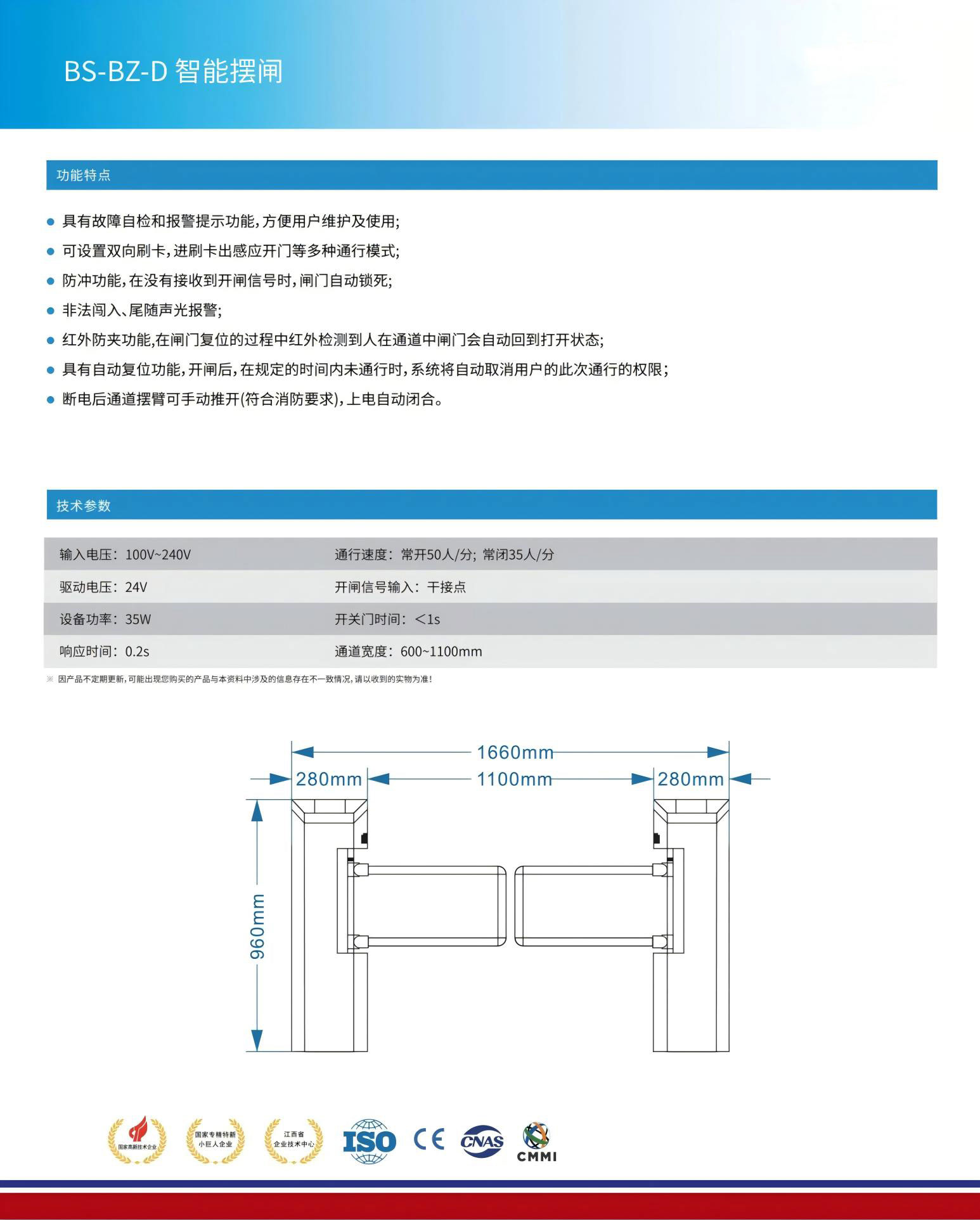 ● 斷電后通道擺臂可手動推開(符合消防要求),上電自動閉合。