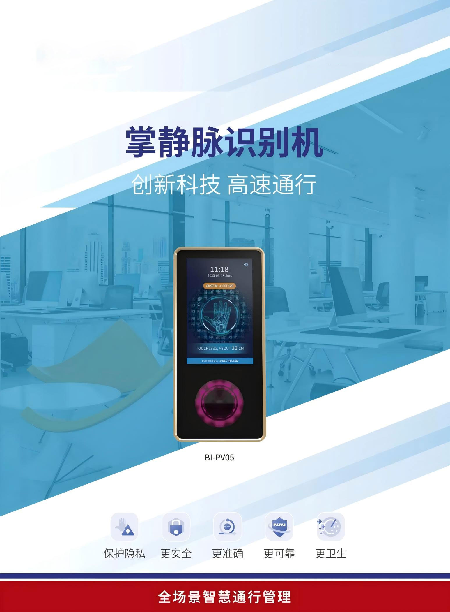 手掌靜脈識別是非接觸式的,只需將手掌放在掃描儀上方7~14CM處,有效地防止因?yàn)榻佑|導(dǎo)致的細(xì)菌或病毒的傳播。