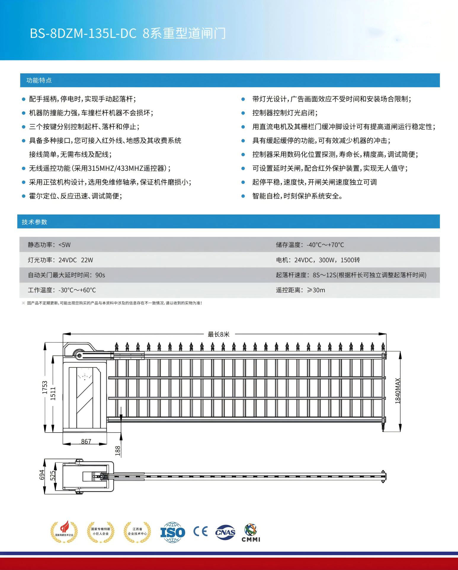 ● 用直流電機及其柵欄門緩沖腳設計可有提高道閘運行穩(wěn)定性;